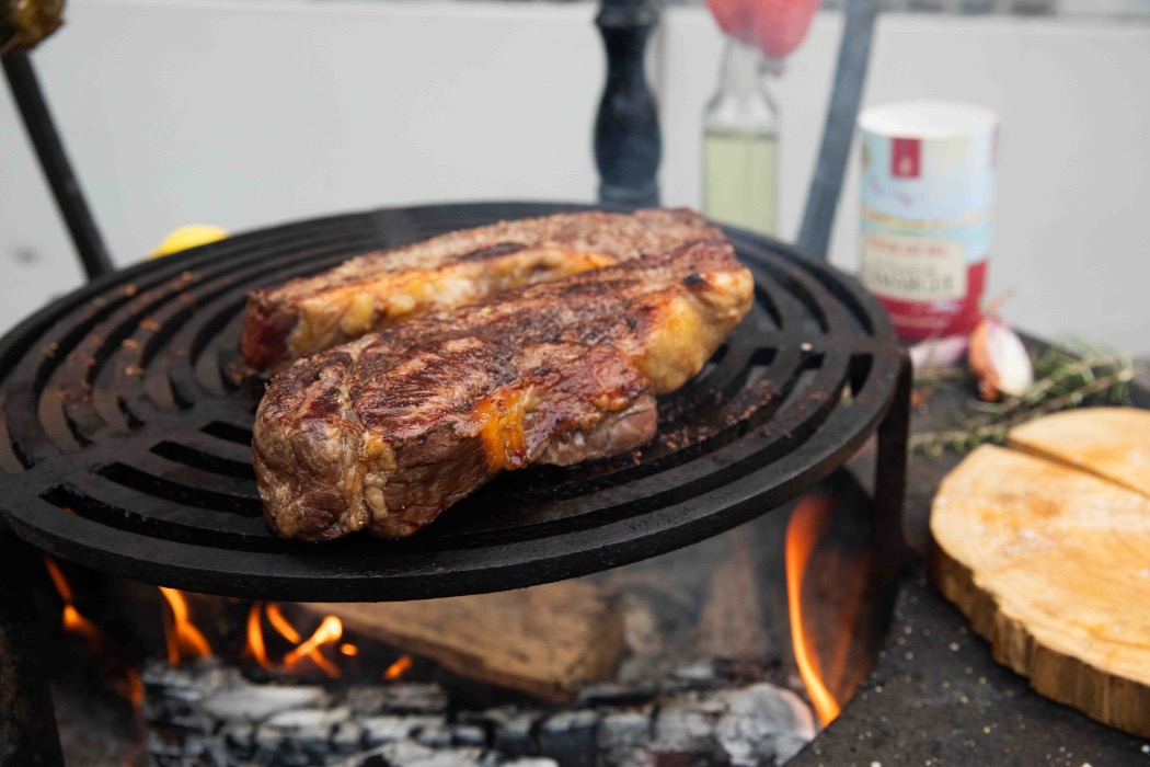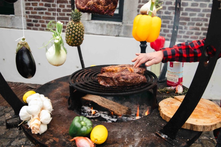 Geniet van heerlijk vlees en gezellige momenten rond het vuur.